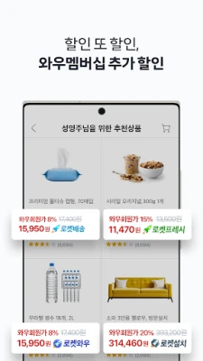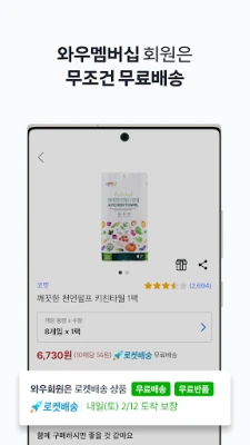 Koe ennennäkemätön ostoskokemus Coupang-sovelluksella, joka on suunniteltu mullistamaan arkesi. Coupangin ainutlaatuisen Rocket Delivery -palvelun ansiosta tilauksesi saapuvat perille uskomattoman nopeasti, usein jo seuraavana päivänä, jopa viikonloppuisin. Coupang tekee arjen sujuvuudesta totta. Jäsenetuihin keskittyvä Rocket Wow Club tarjoaa entistäkin parempia etuja, kuten ilmaiset toimitukset monille tuotteille, aamutilausten toimituksen jo samana päivänä, ja jopa tuoreiden elintarvikkeiden toimituksen aikaisin aamulla, sekä vaivattoman 30 päivän palautusoikeuden.