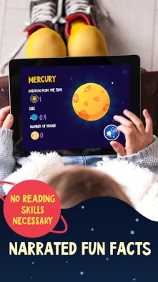 Napauttamalla näyttöä, pienet seikkailijat voivat helposti tutkia erilaisia taivaankappaleita erityisen osoittimen avulla ja oppia lukuisten mielenkiintoisten faktojen kautta. He oppivat planeetoista, tutustuvat Hubble-avaruusteleskooppiin, ymmärtävät ilmansuuntien määrittämistä Pohjantähden avulla ja paljon muuta. Tämän opettavaisen matkan päätteeksi lapsilla on mahdollisuus testata uusia tietojaan lyhyellä ja innostavalla tietovisalla, joka mittaa leikin varjolla hankittua osaamista. Star Walk Kids on täydellinen johdatus tähtitieteeseen, joka tekee avaruuden ihmeistä saavutettavia ja uskomattoman jännittäviä kaikenikäisille lapsille.