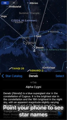 Muuta älypuhelimesi henkilökohtaiseksi tähdistöoppaaksi ja tutustu yötaivaan ihmeisiin ennennäkemättömällä tavalla. Tämä innovatiivinen sovellus mahdollistaa taivaankappaleiden, kuten tähdistöjen, planeettojen ja satelliittien välittömän tunnistamisen – suuntaa vain laitteesi yläilmoihin, ja lisätty todellisuus (AR) paljastaa niiden nimet ja sijainnit reaaliaikaisen kameranäkymäsi päällä. Pyyhkäisemällä voit vaivattomasti tutkia koko taivaankannen, etsitpä sitten tuttua Otavaa tai kaukaisia galakseja.